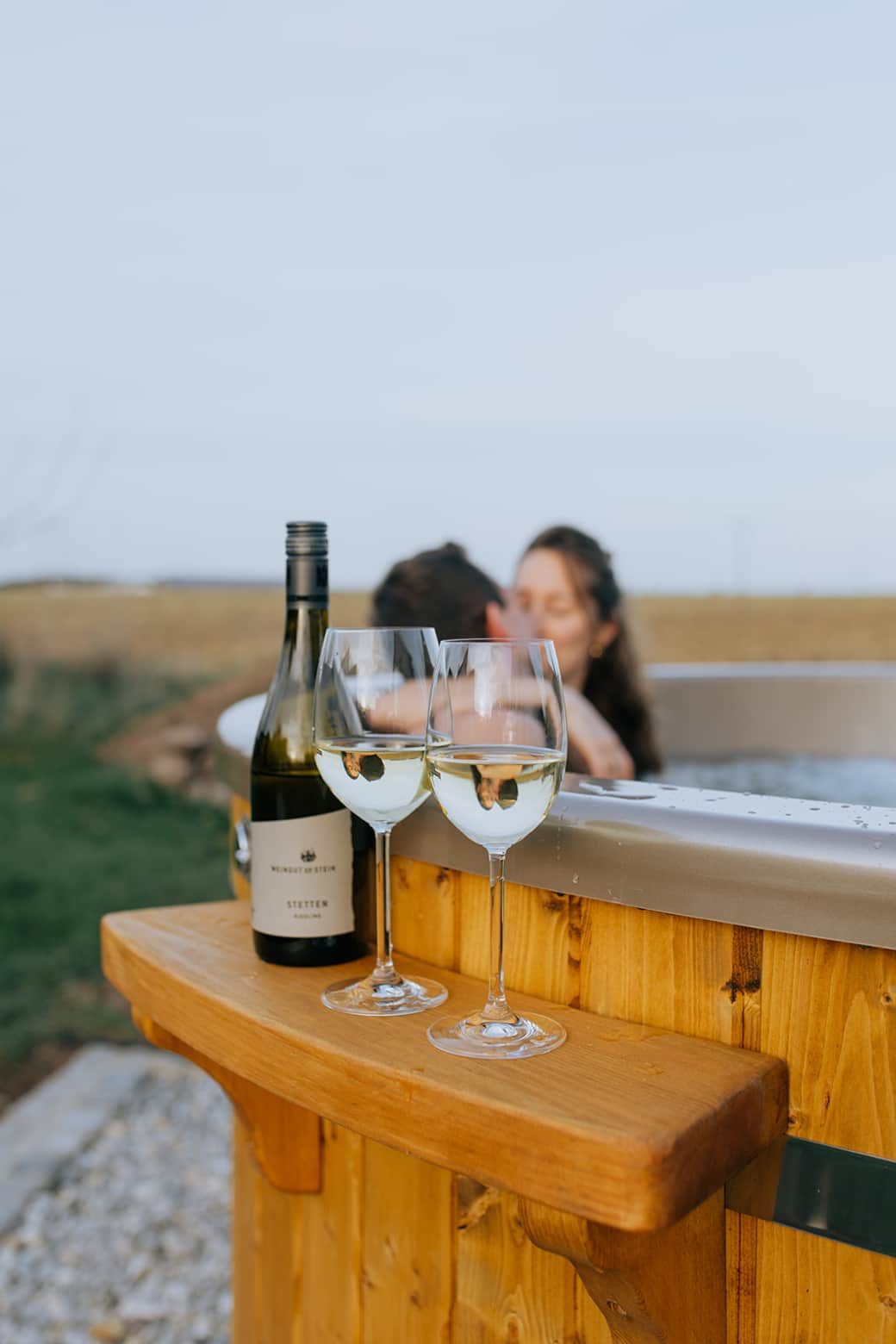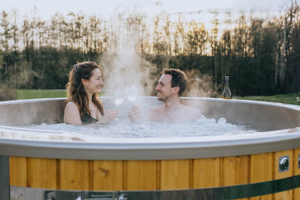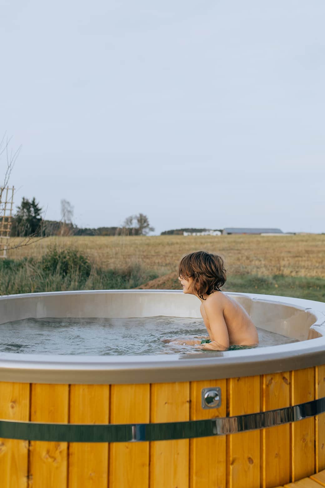 Der mit Holz befeuerte Whirlpool bietet zu jeder Jahreszeit ein besonderes Erlebnis. Als Ergänzung zur hochwertigen Ausstattung des Ferienhauses vereint er Komfort und Entspannung im Freien: An warmen Tagen sorgt er für Erfrischung, an kühlen Tagen für wohlige Wärme und tiefe Erholung. Ein Ort der Ruhe und Gelassenheit, eingebettet in eine traumhafte Kulisse unberührter Natur, die zu jeder Jahreszeit ihren eigenen Zauber entfaltet.
