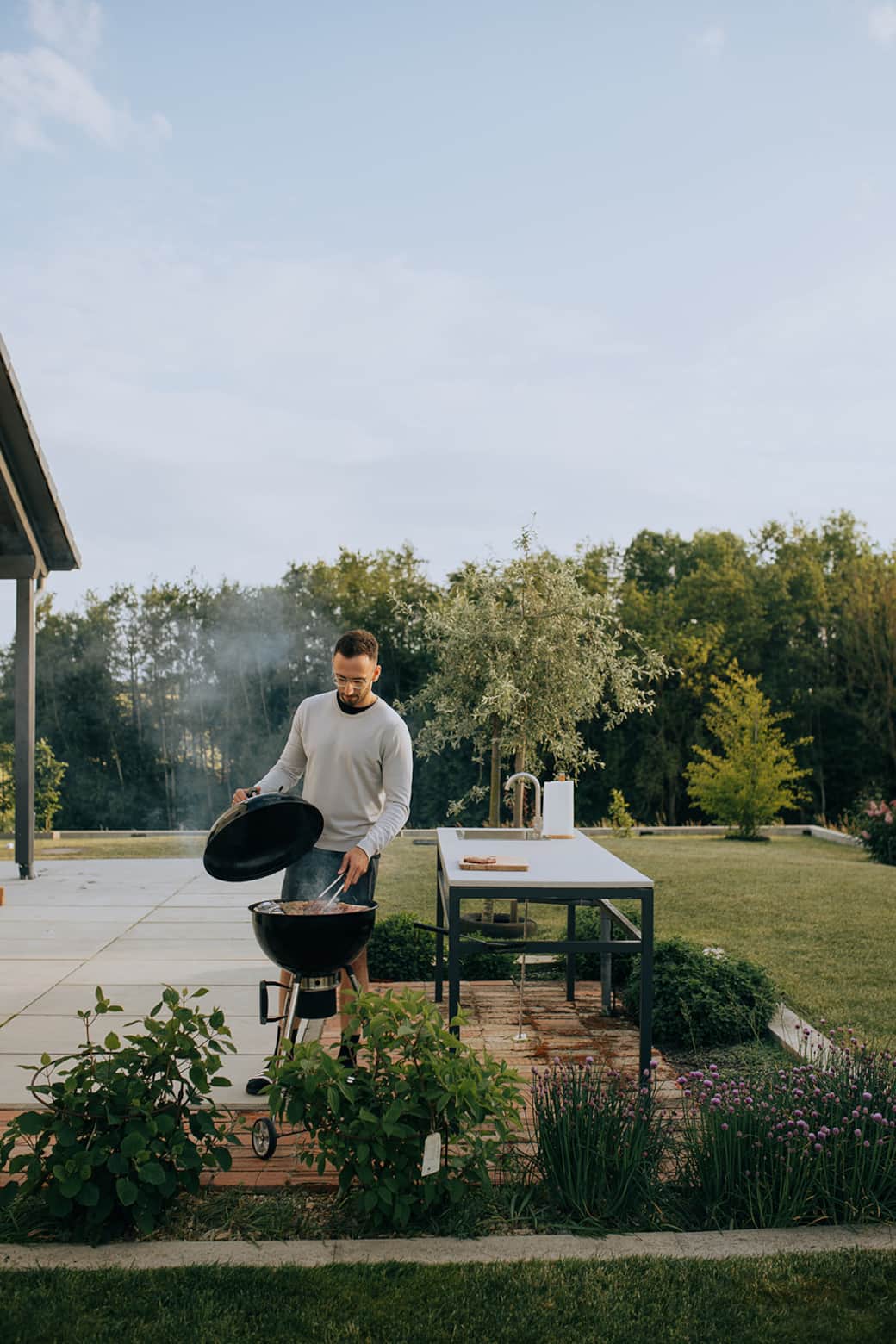 Im Außenbereich laden ein Grill und eine kleine Outdoorküchenecke mit Waschbecken und Arbeitsfläche dazu ein, auch im Freien kulinarische Highlights zu kreieren – ohne dabei den Sonnenuntergang aus den Augen zu verlieren.