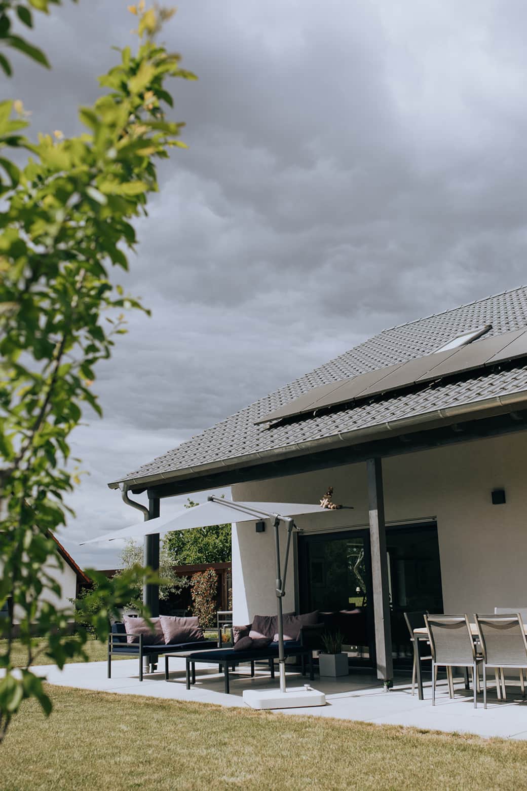 Hier in Mittelfranken findest du ein im Einklang mit der Natur und nach Vasati, der Raumgestaltung nach indischer Tradition, gestaltetes Haus, mit großen, offenen Fenstern und Räumen, einem modernen, schlichten und exklusivem Einrichtungsstil sowie höchstem Stand der Technik.