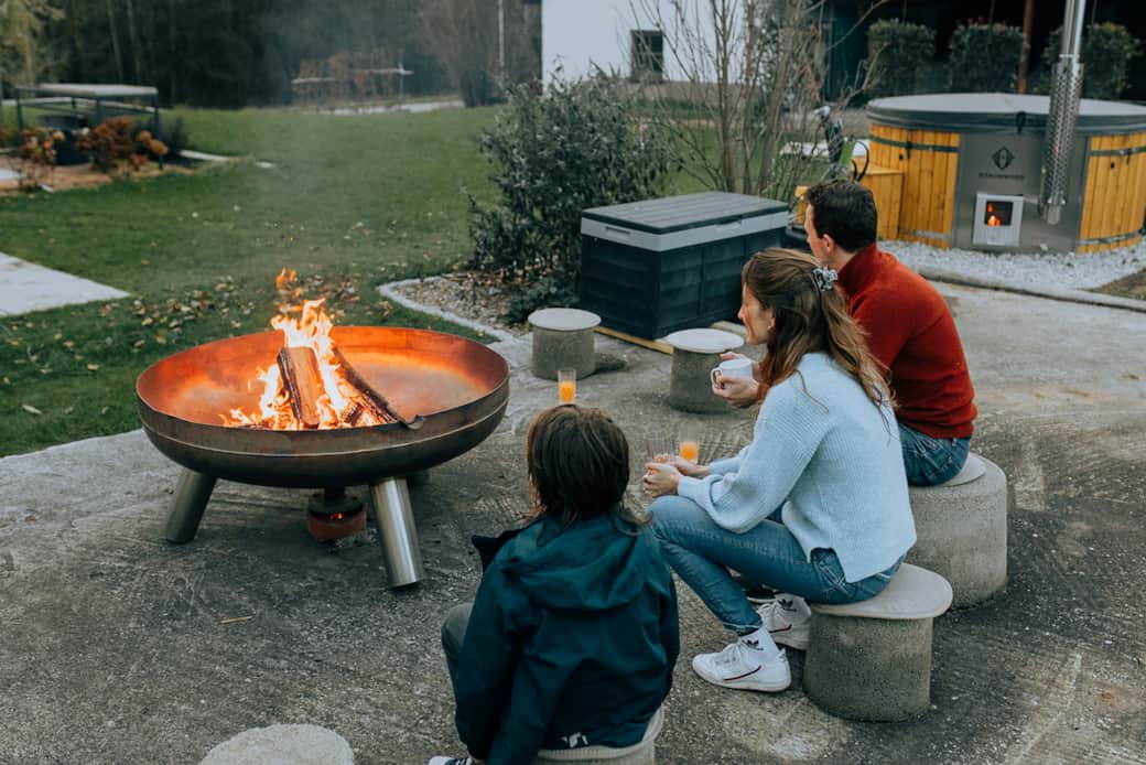 Wenn es dämmert, wird die Feuerstelle zum Mittelpunkt. Flammen tanzen, Zeit verliert an Bedeutung, und gemeinsame Stunden bekommen eine besondere Tiefe. Ob in stiller Runde oder im lebendigen Austausch – die Wärme des Feuers verbindet und schafft Erinnerungen, die bleiben.